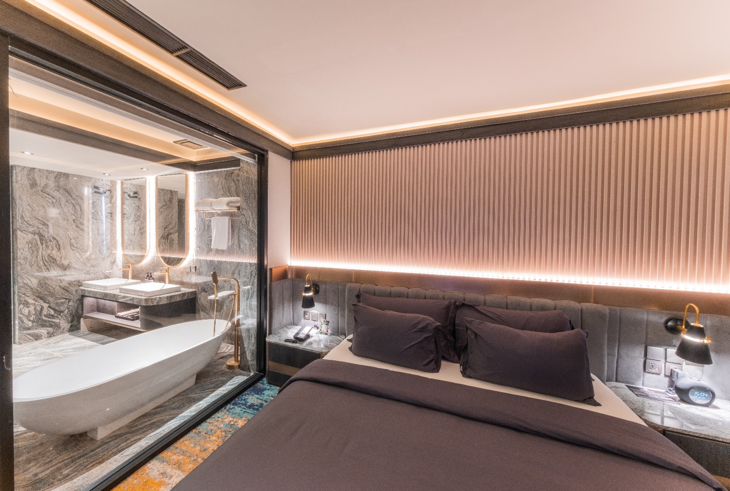 The Executive Suite offers spacious luxury with elegant decor and a dedicated living area. Stay productive with high-speed internet and an ergonomic workstation, or relax with a smart TV featuring international channels. Enjoy premium bedding and a modern bathroom with a rain shower, bathtub, and luxurious toiletries.